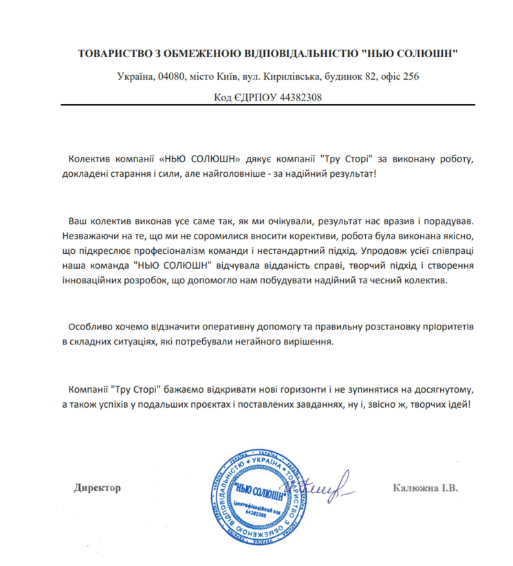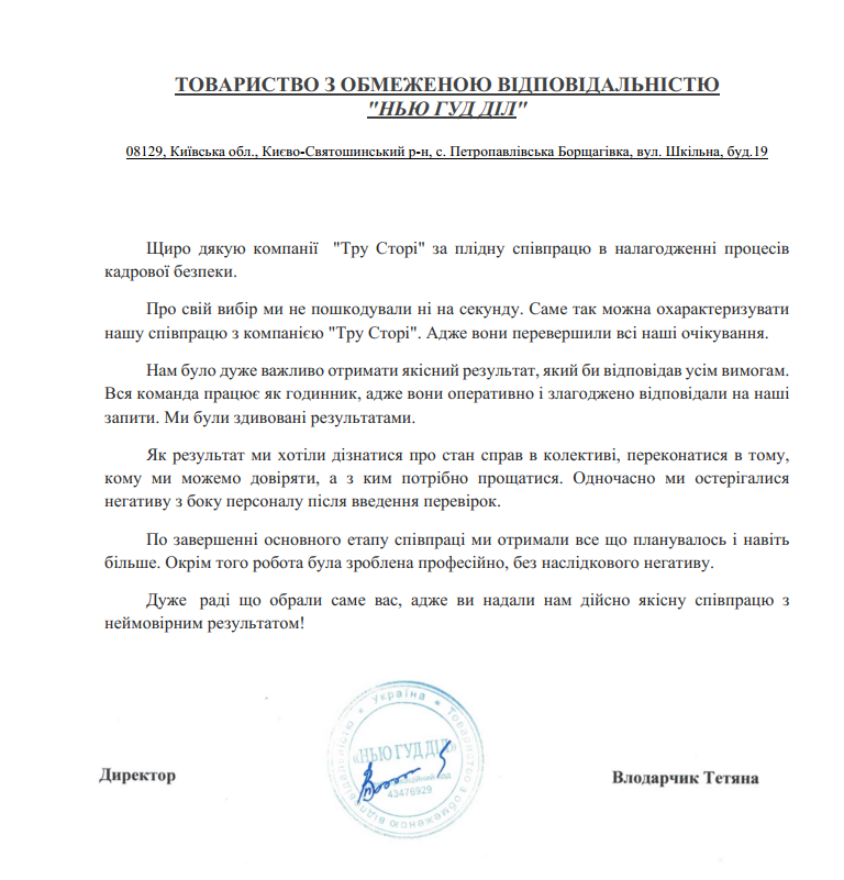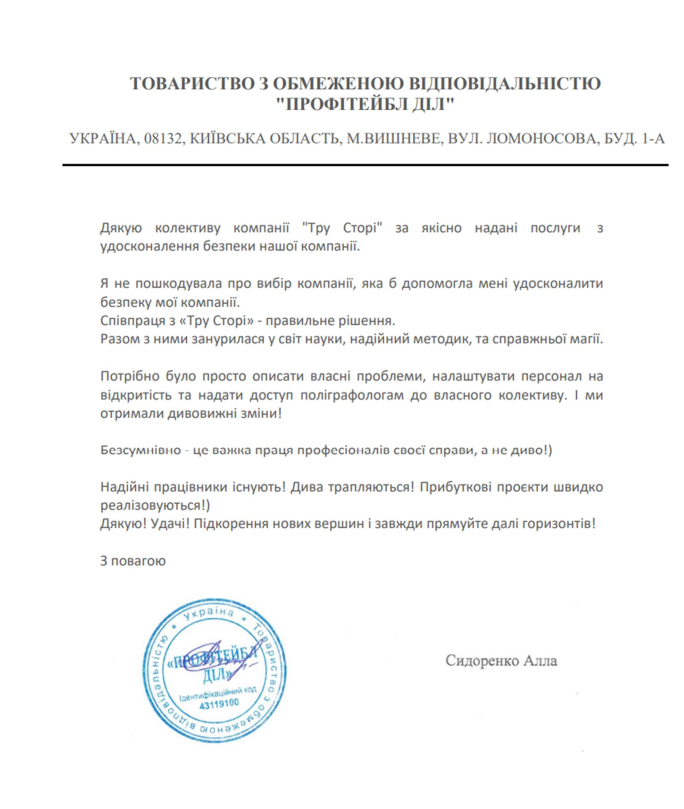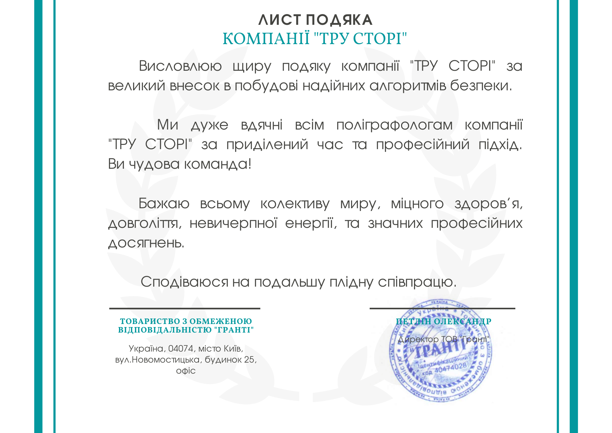 Ми не шукаємо де людина обдурила, як роблять інші компанії. Ми робимо все, щоб дізнатися саму правду. На це йде більше часу і саме тому ми називаємось True Story. Ми шукаємо не брехливу відповідь, а хочемо дізнатися правду. Цього майже ніхто не робить.